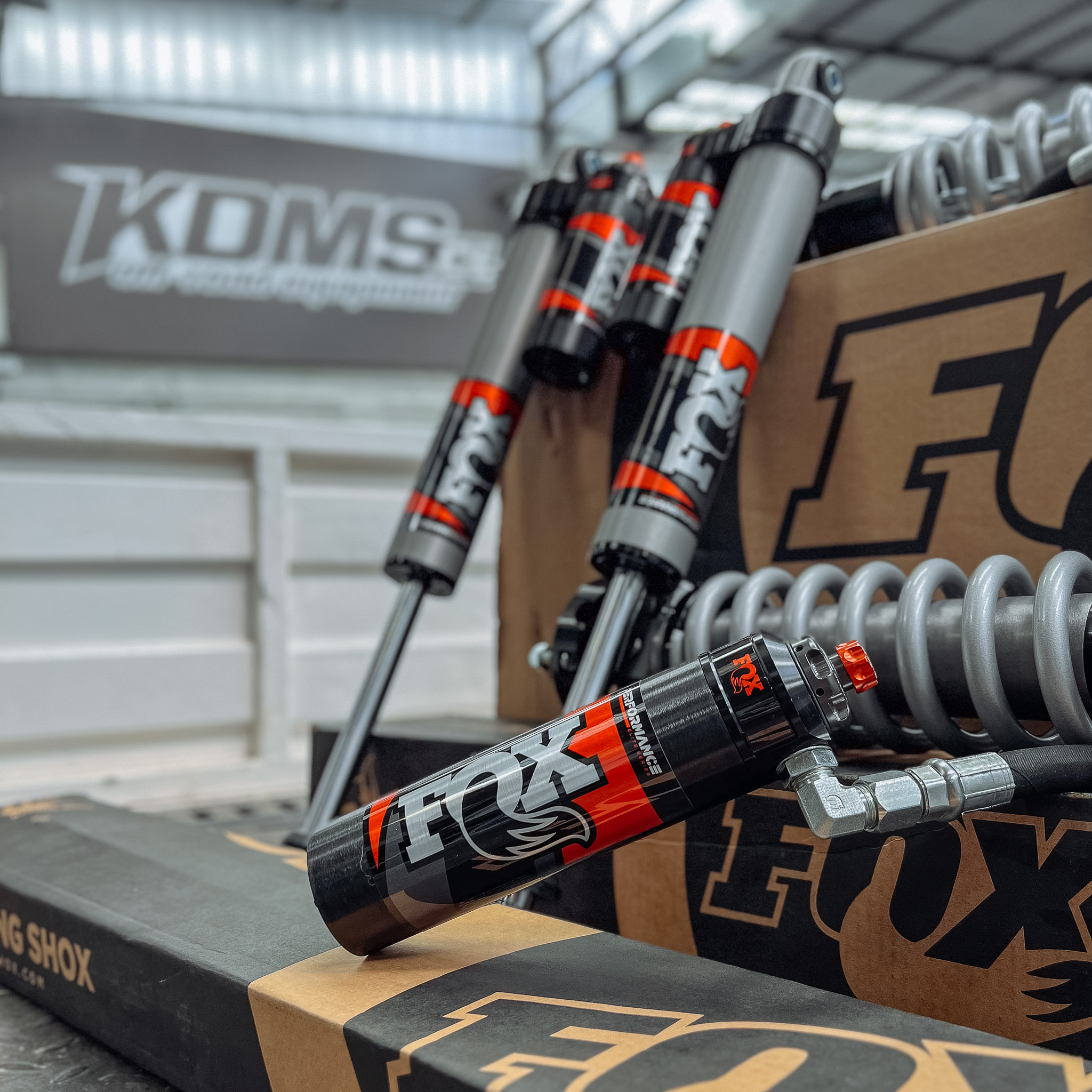 Los coilover delanteros compuestos por amortiguador Fox + espiral Eibatch permiten regulación de altura desde 0-2″ dependiendo si quieres levantar o no la parte delantera de la camioneta emparejándola con la parte trasera. Hace el mismo trabajo que un “Leveling” con el beneficio de además mejora la suspensión y desempeño de la camioneta dándole mayor recorrido